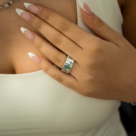 Stars & flowers band argentée - Vert
