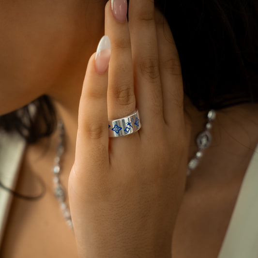 Stars & Flowers band argentée - Bleu