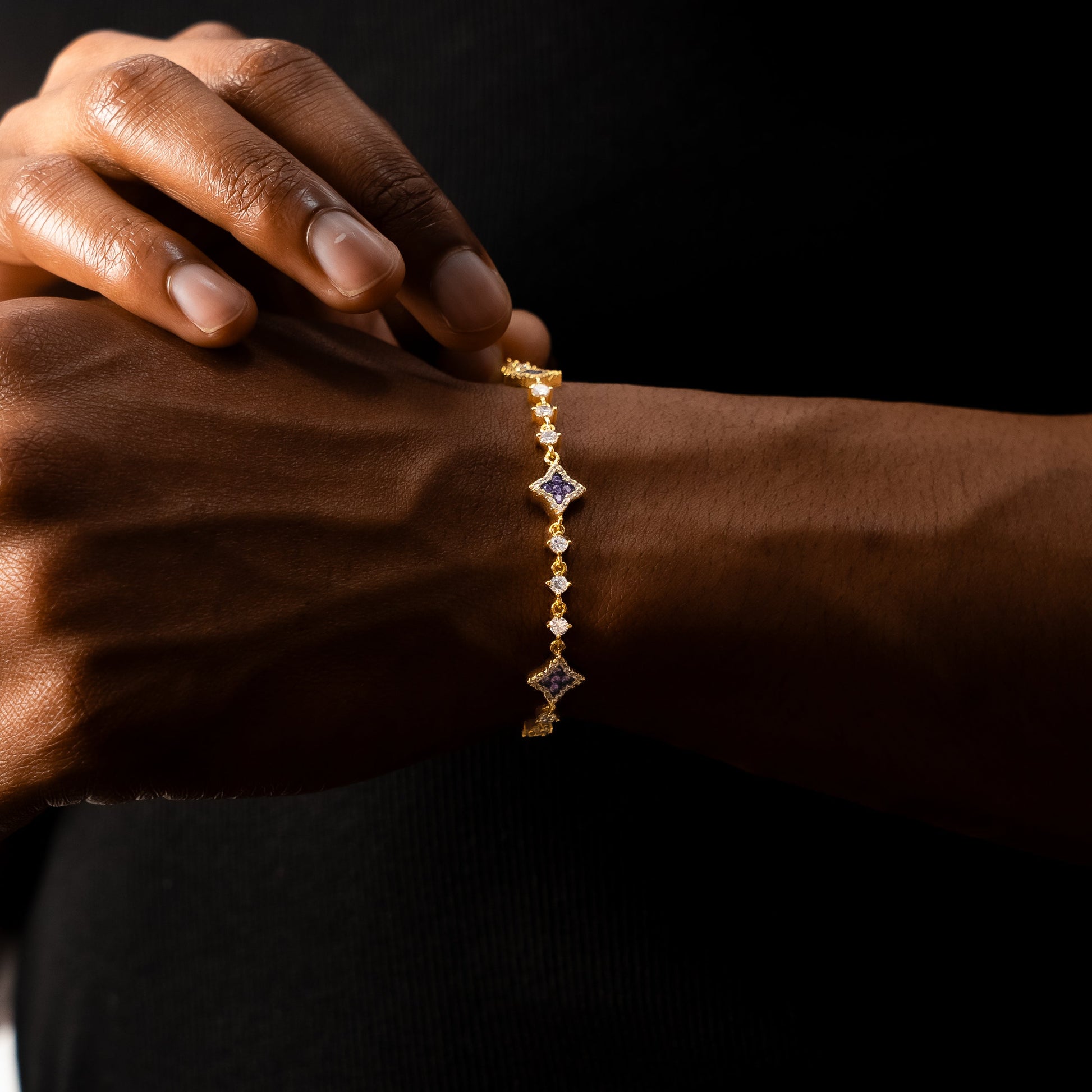 Bracelet Flower Tennis Doré - Pierres violettes