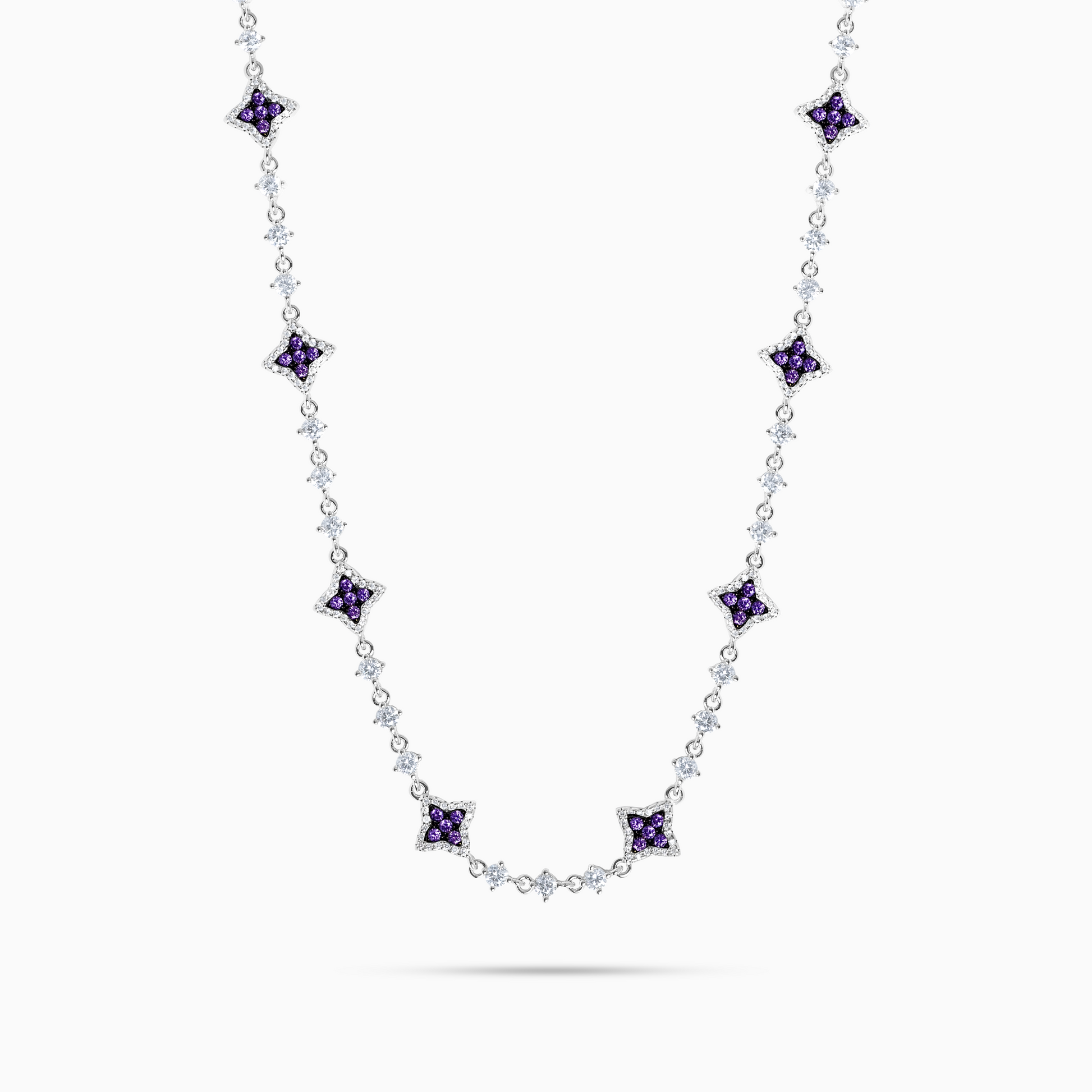 Chaîne Flower Tennis Argentée - Pierres violettes