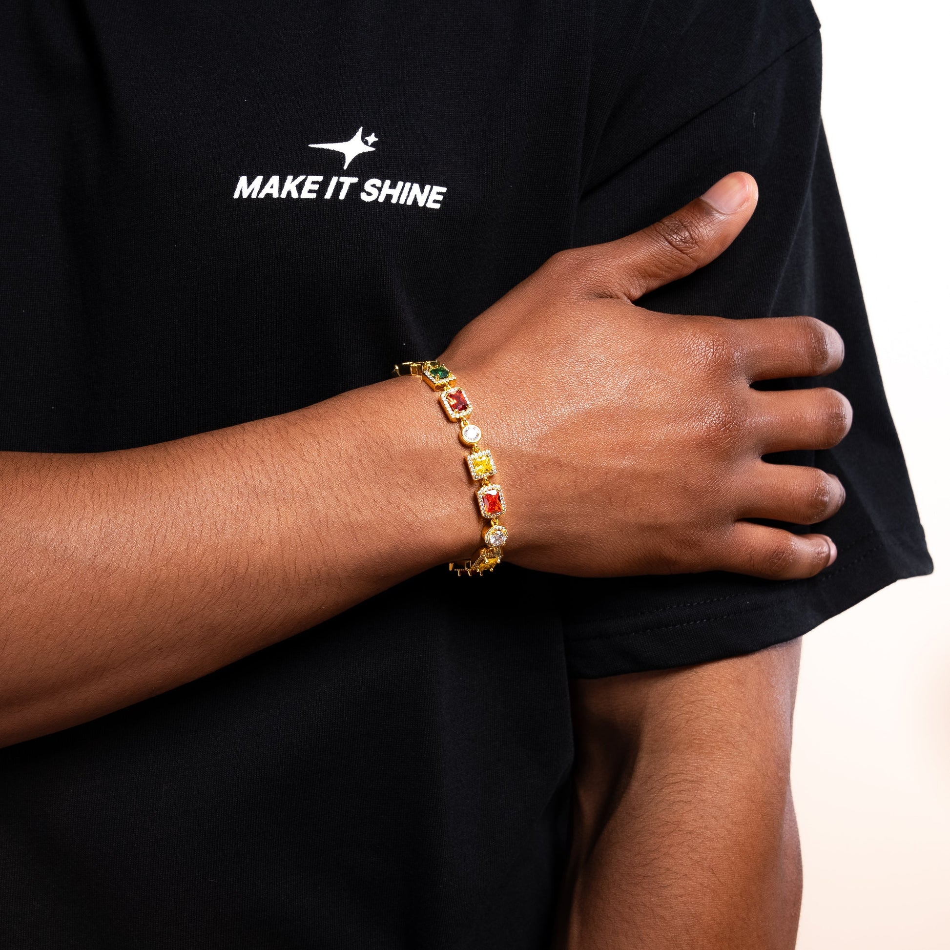 Bracelet Multi Gemstone 8 mm Doré