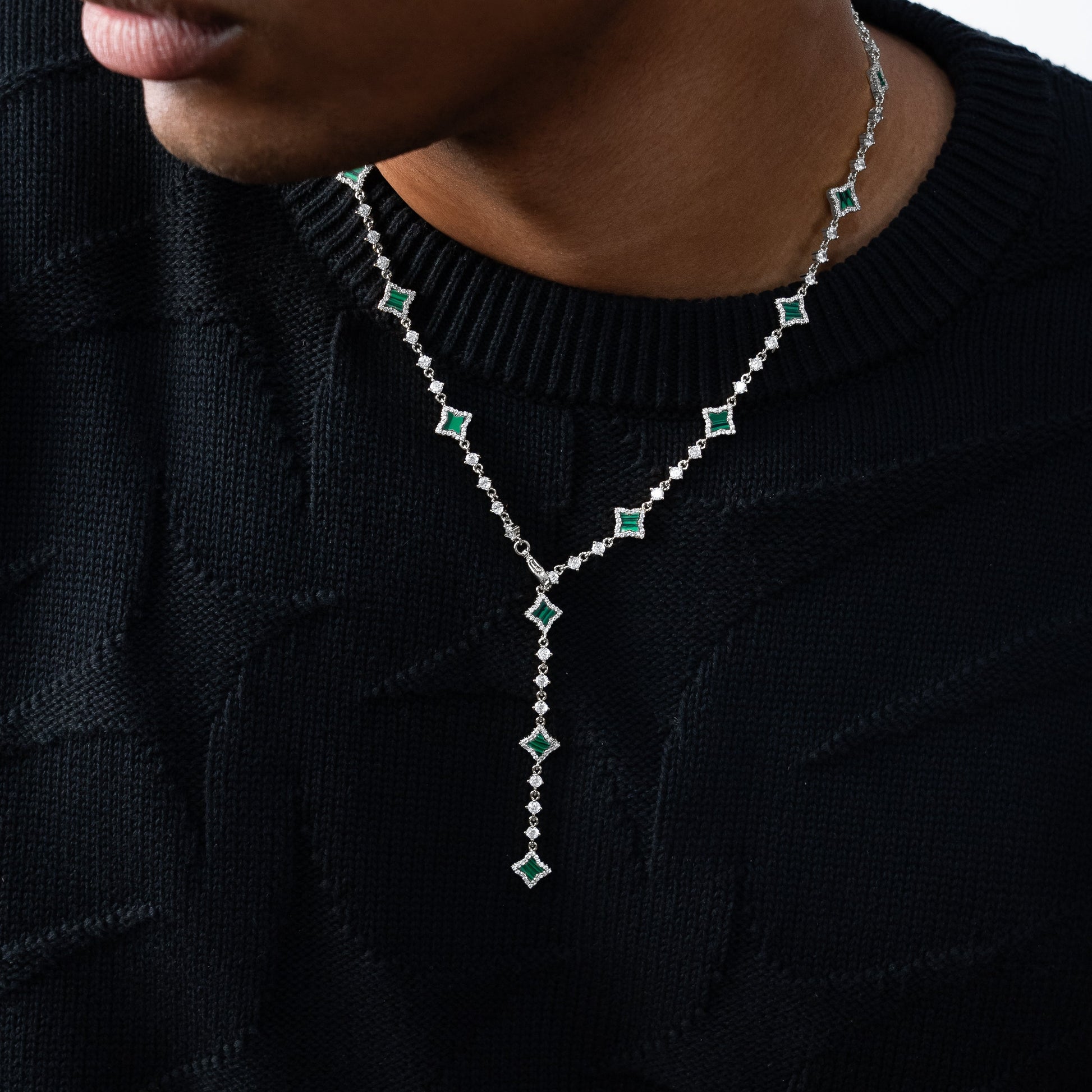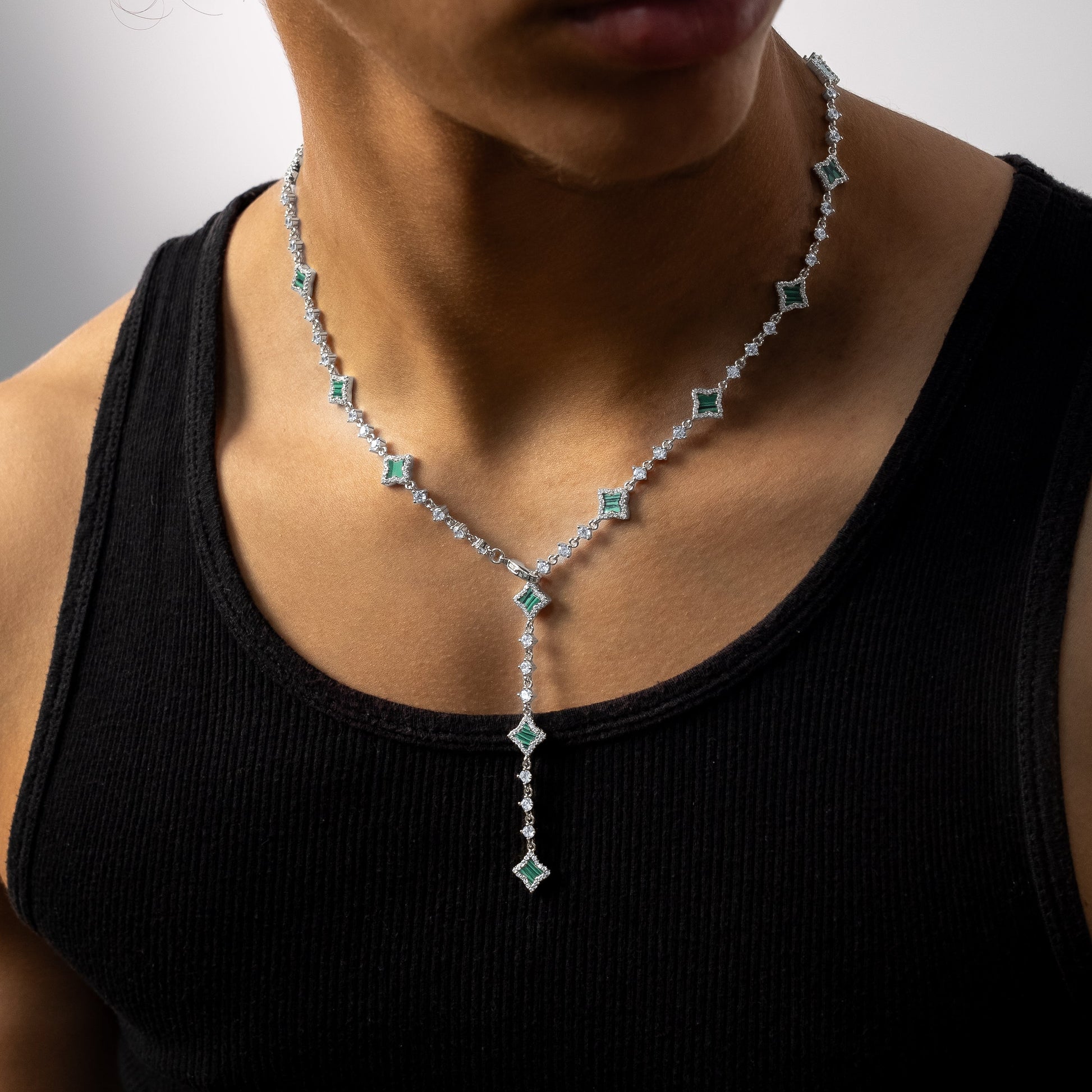 Lariat Flower Tennis Argenté - Motif Vert
