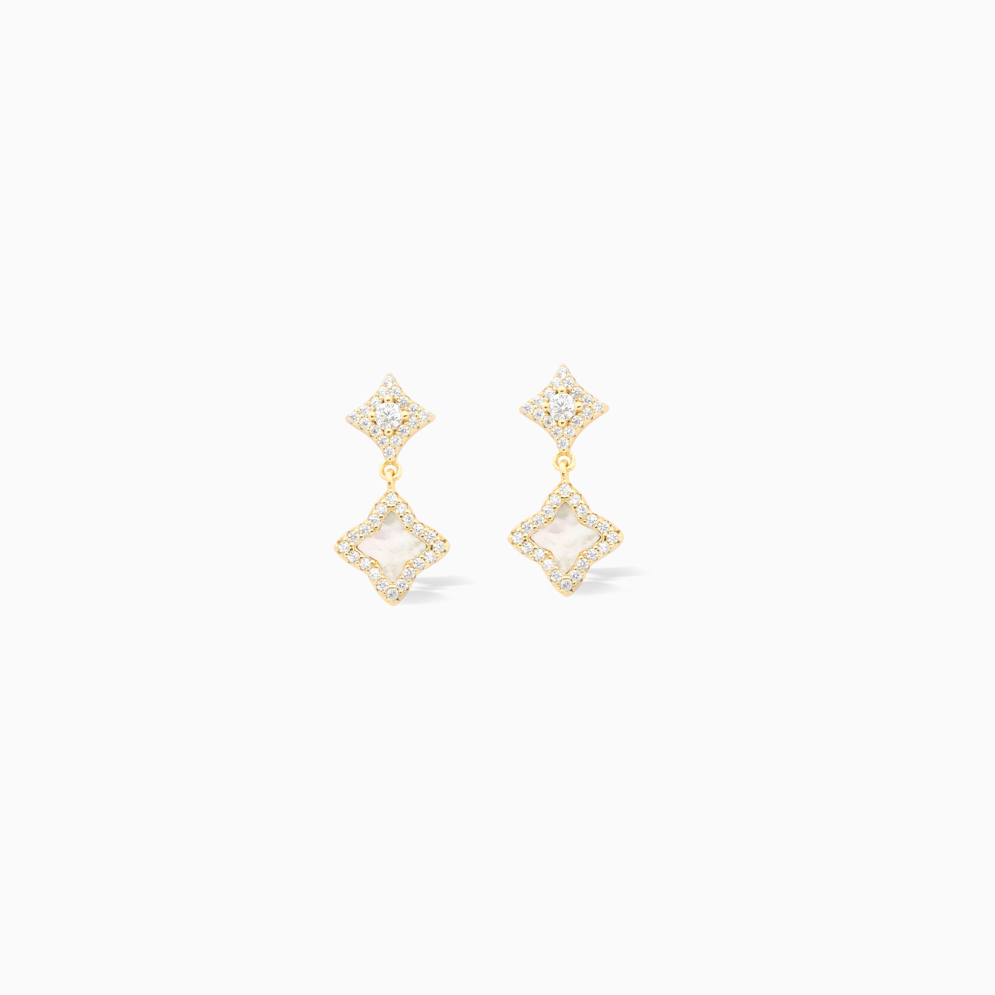 Stars & Flowers earrings dorées - Motif blanc